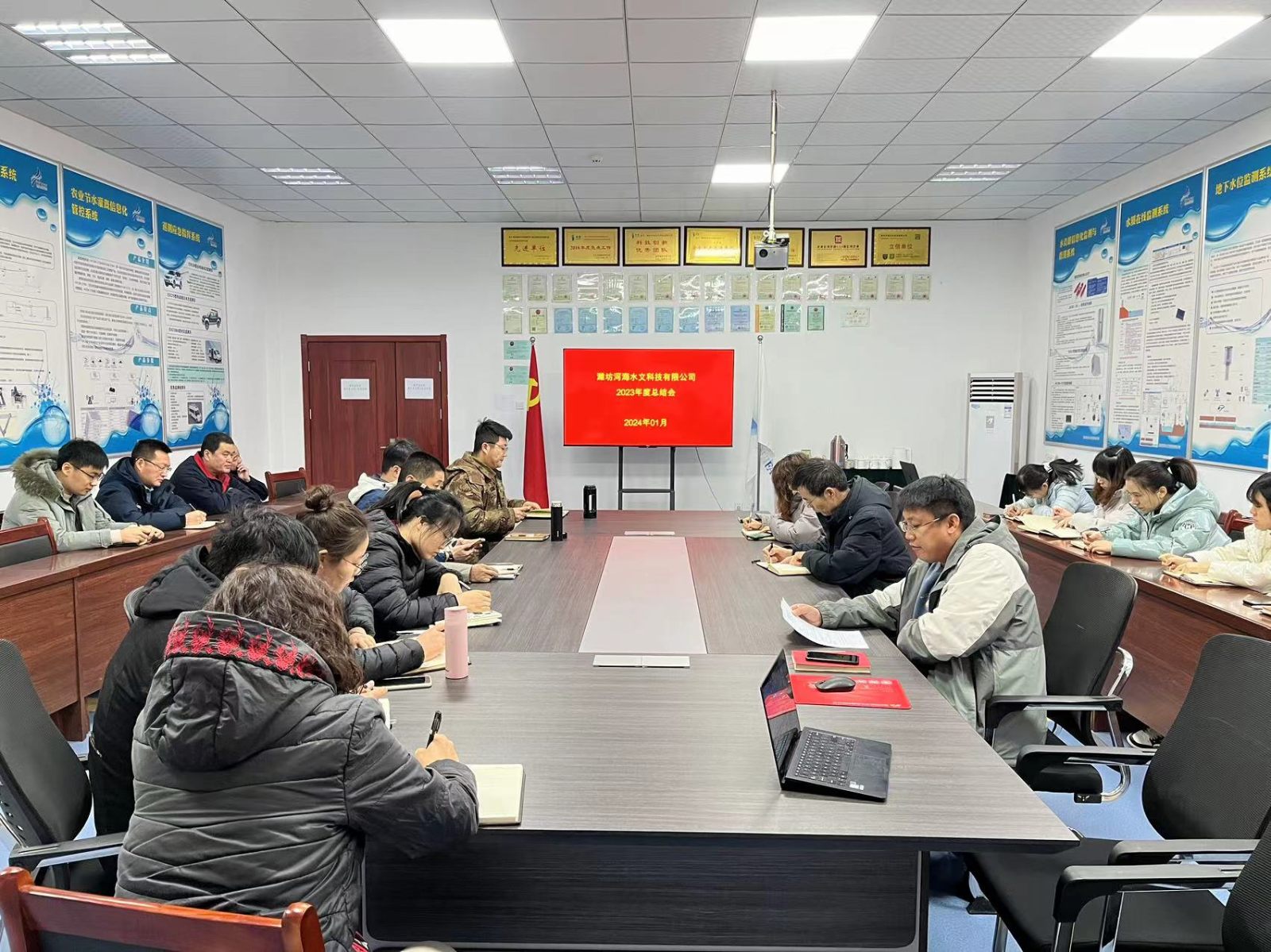 1月2日,濰坊河海水文科技有限公司組織全體員工召開2023年度總結(jié)會(huì),對2023年工作進(jìn)行回顧、反思,對2024年工作進(jìn)行規(guī)劃。董事長龐明濤及全體員工參加會(huì)議。