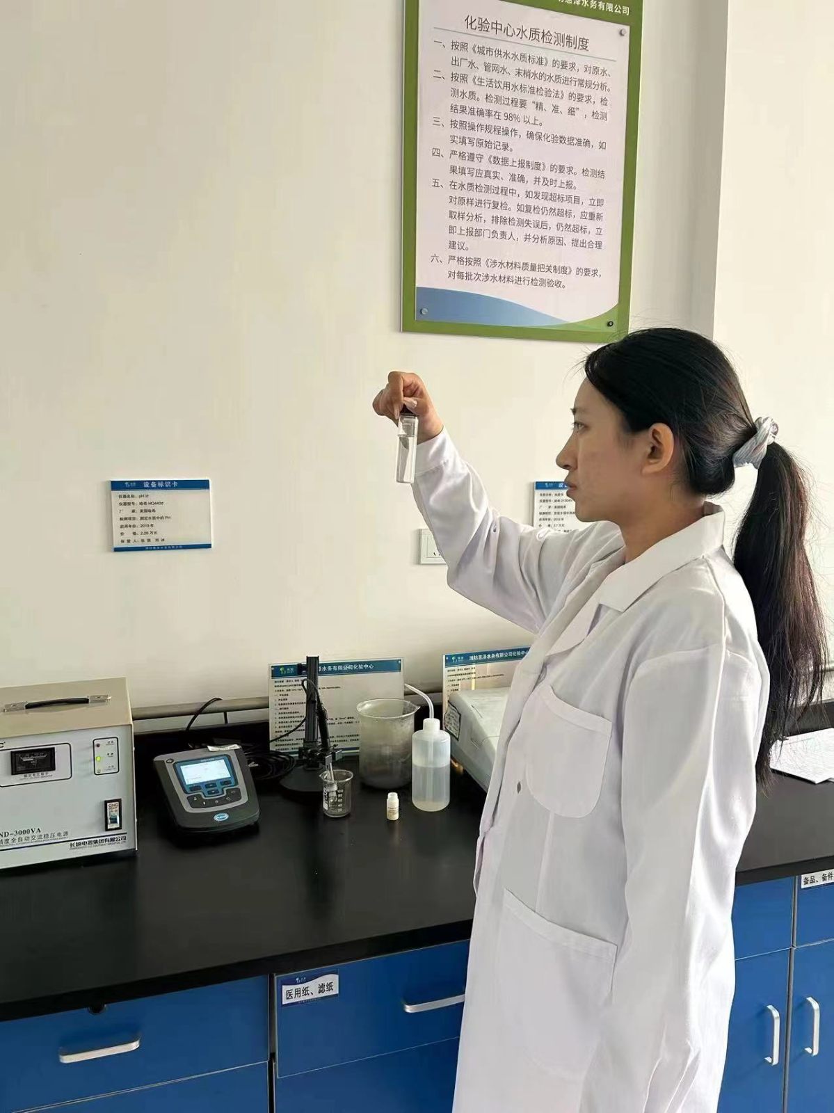 化驗中心加大對原水、出廠水的化驗頻次,擴(kuò)大監(jiān)測范圍,同時對終端用戶水質(zhì)進(jìn)行跟蹤監(jiān)測,達(dá)到水質(zhì)檢測全覆蓋。