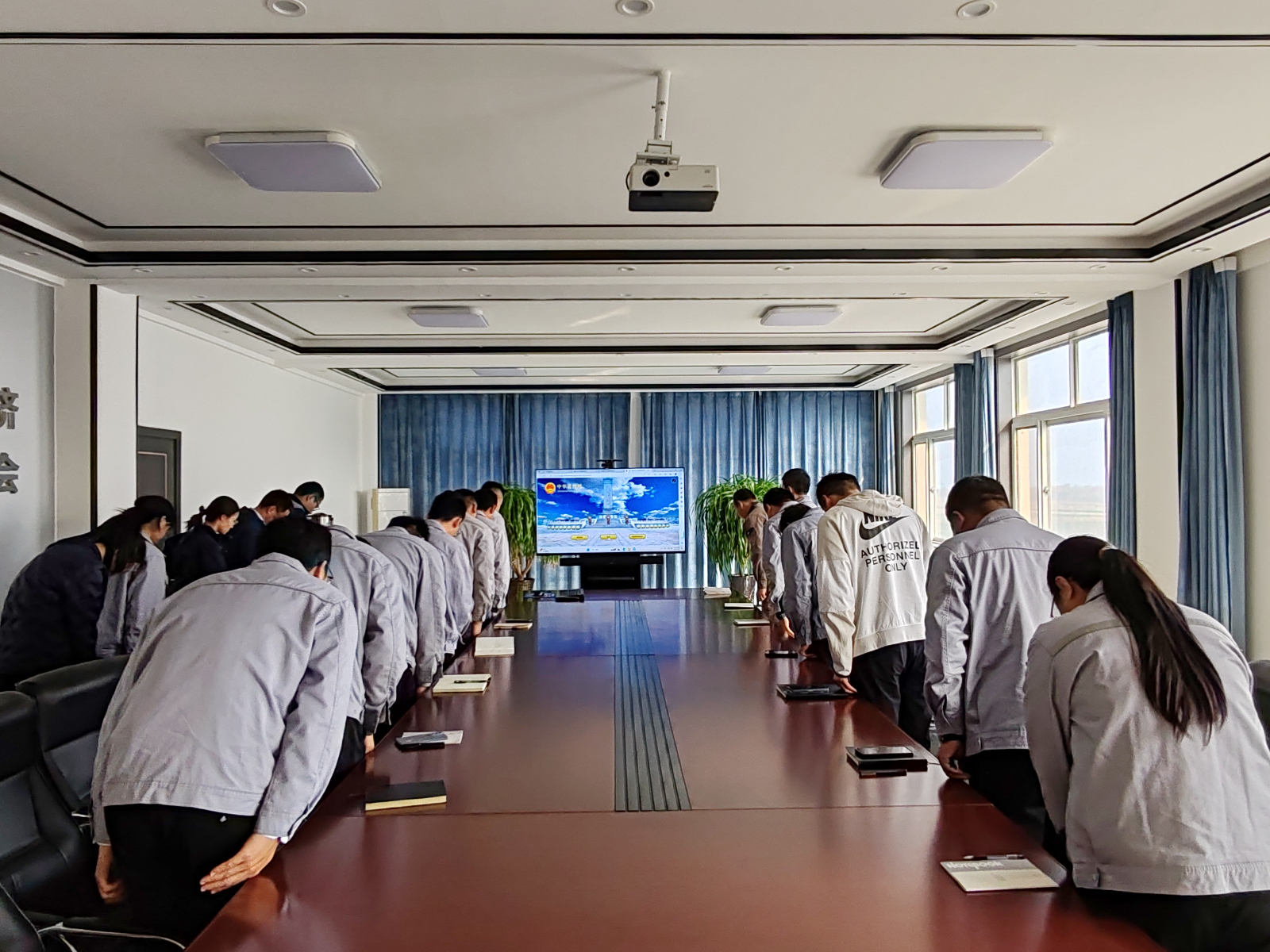 參加祭掃活動的干部職工,集中在會議室,通過登錄中華英烈網(wǎng),為英烈鞠躬、獻(xiàn)花,以網(wǎng)上祭奠的形式,致敬英雄烈士。